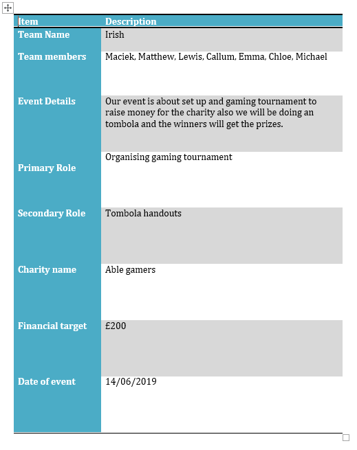 Unit A3 is mostly about how we can develop our skills in communication, teamwork and problem solving also we used to develop our skills in working as a team. We have to organised an charity event of our own choice we have been put in groups of 4, We used to have free hand of what charity will we support the charity we picked is to organised the gaming tournament and also we decide to do an cake sale. The tournament is all about players will compete with each other to win some big prizes the entry fee was £10 we put an players into a group first and the player who win get £20 voucher of what they want. For the cake sales we have bought the cakes and sell them 50p each people buy lots of them because they knew this is also to help charity. The one problem we have to face with team is that we do not know what charity we want to support but after few days we decided that we will gave it to Able games this charity is able to give poor children time to be happy while spending time playing games. This unit help me to develop my skills in how to work as a team and how to communicate with others to achieve what we want. I will show you the screenshots of what we decided to do for our charity event also our name etc.